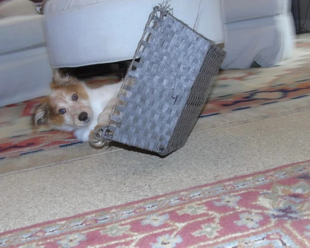 «Момент, когда наш пес осознал, что корзина, в которой он сидел, падает»