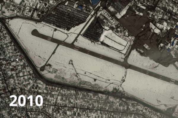 Самолёты, что могли улететь — улетели, но несколько бортов, так и остались в аэропорту, по разным причинам. И судя по спутниковым снимкам их за пару лет собрали все в одном месте на отшибе территории, где они и стояли до самого конца. На месте же стоянки самолетов, сделали стоянку и парковку для автомобилей.