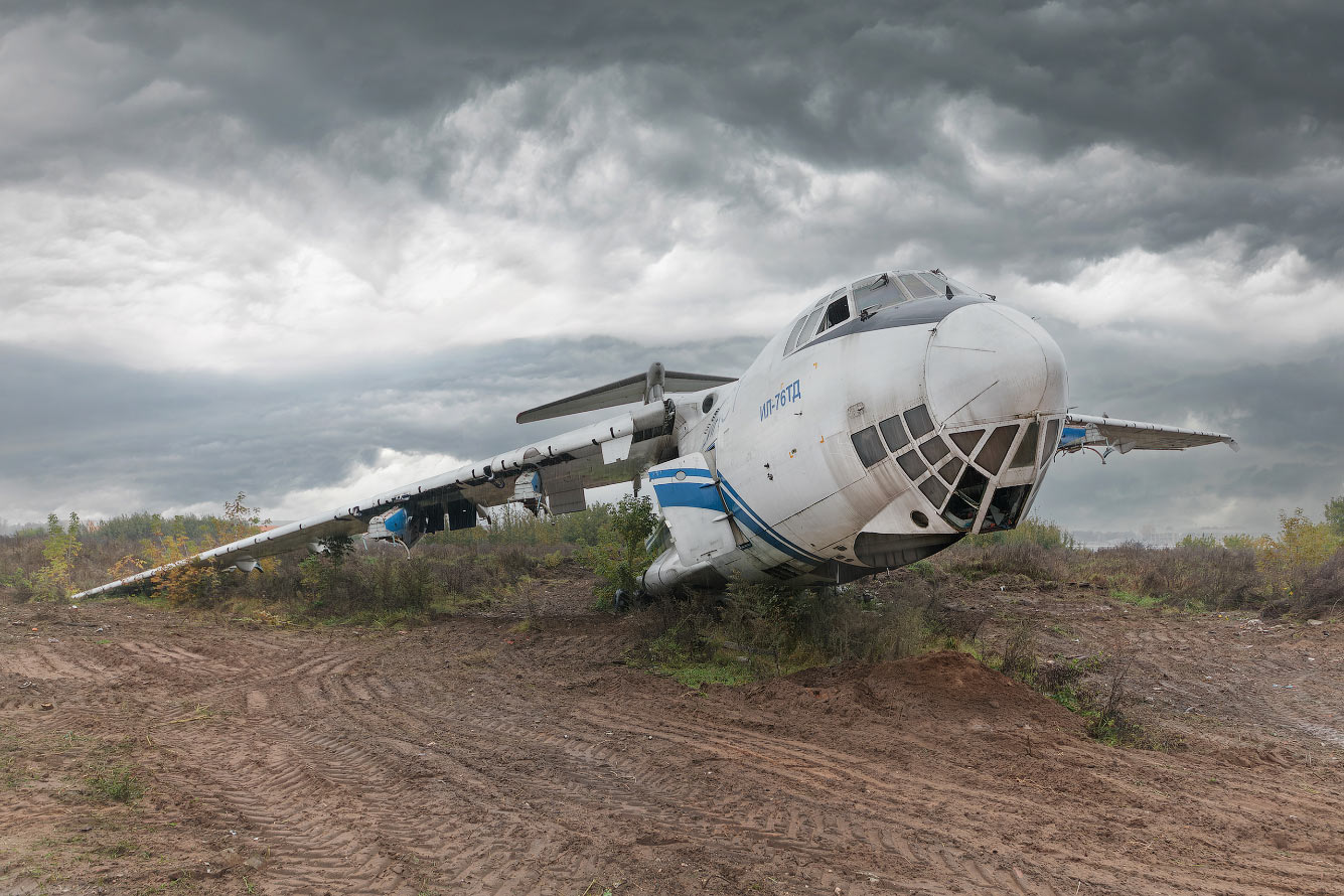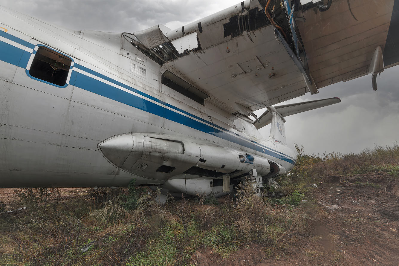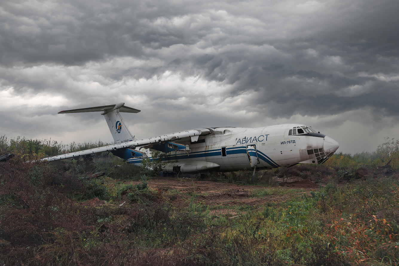Так как на оставшиеся самолёты всем было плевать, попасть к ним оказалось совсем не сложно. И одним пасмурным осенним днём, я приступил к знакомству с последними самолётами аэропорта Быкова. Начал я со стоявшего в гордом одиночестве, уже не летательном аппарате, ИЛ-76ТД.