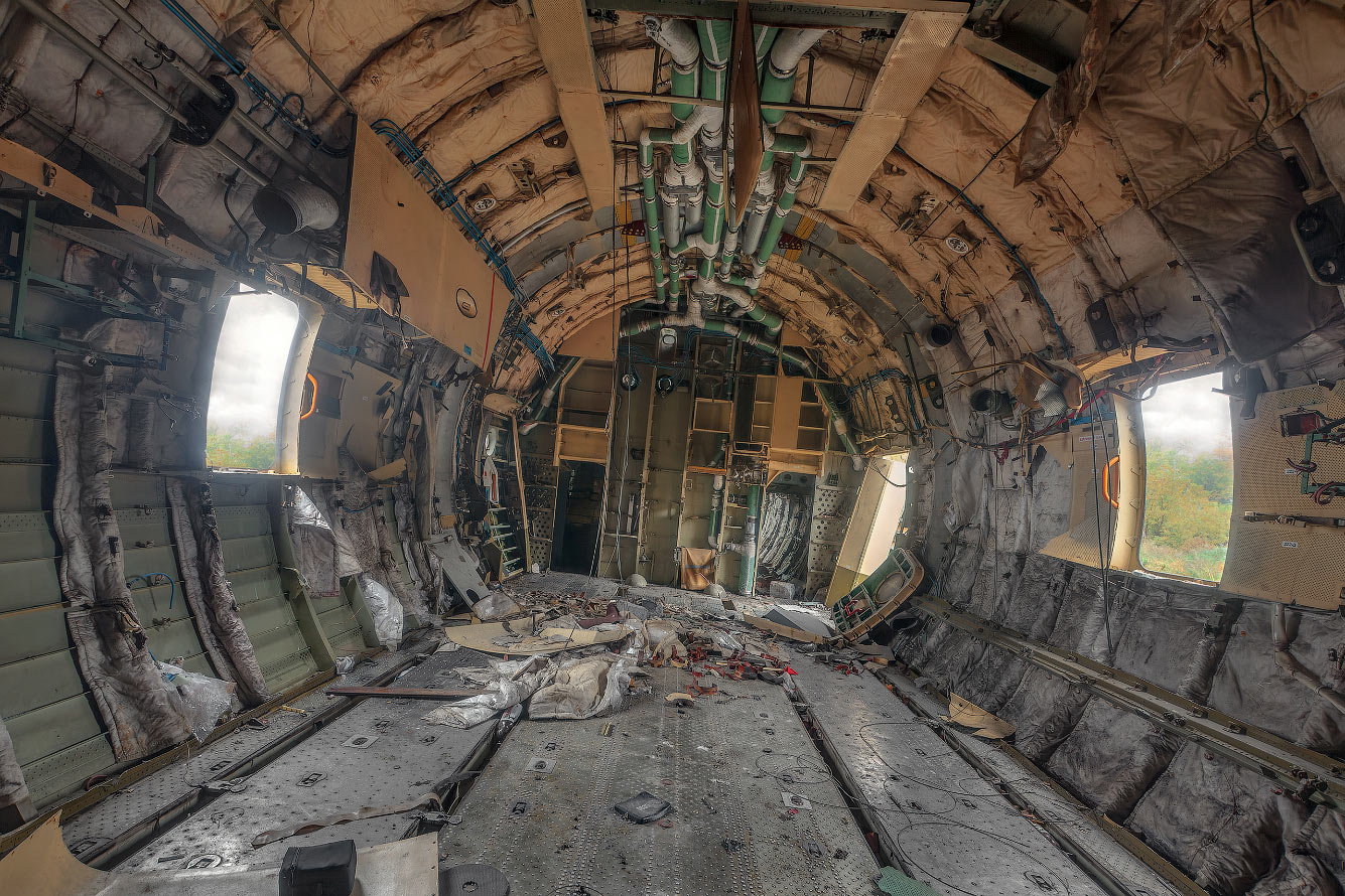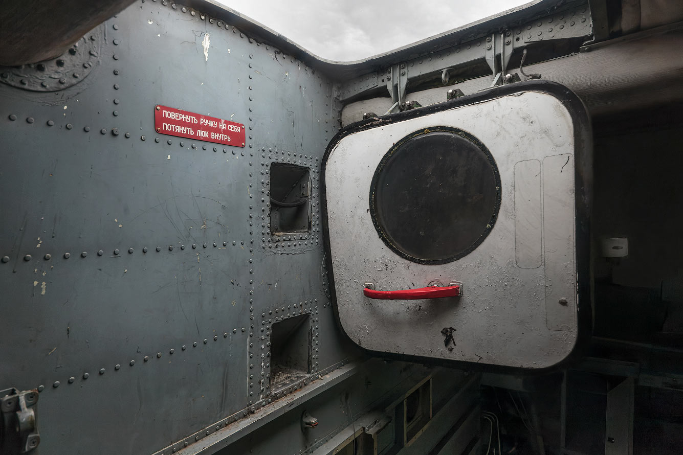А вот в хвостовой части аварийные выходы откидные и расположены высоко, видимо поэтому они еще остались на месте. Сделано это было не просто так, при желании в грузовом отсеке можно соорудить вторую палубу и тогда эти выходы находятся на удобном уровне. Когда палубы нет, то от крышек идет трап, для опрокидывания крышки и удобного подъема по нему в случаи ЧП.