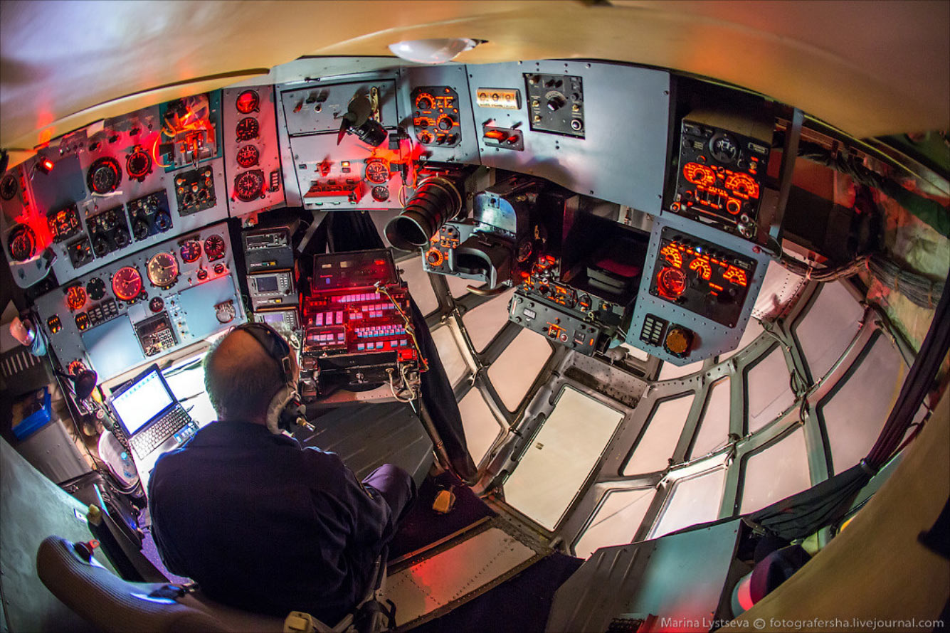 Между дверями располагается место бортового техника, который отвечает за грузовой отсек. Максимальная коммерческая нагрузка именно этого борта составляла 50 тонн, а доставить этот груз он мог на 3 650 км. Современная вариация (Ил-76МД-90А) может перевозить уже 60 тонн на 4000 км. И да, самолёт выпускается и сейчас.