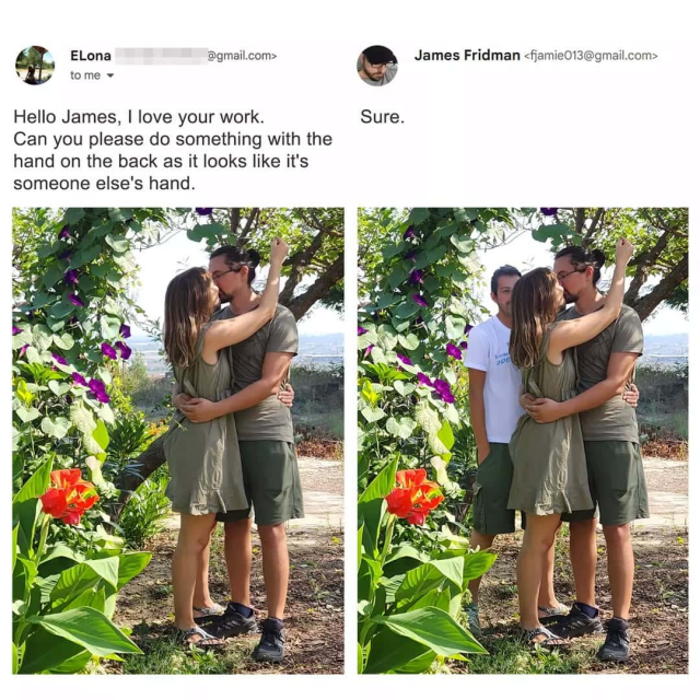 Джеймс Фридман - один из самых известных мастеров фотошопа в интернете. Его работы ждут огромные очереди клиентов, и они всегда оправдывают ожидания, потому что он с точностью выполняет все пожелания своих подписчиков.