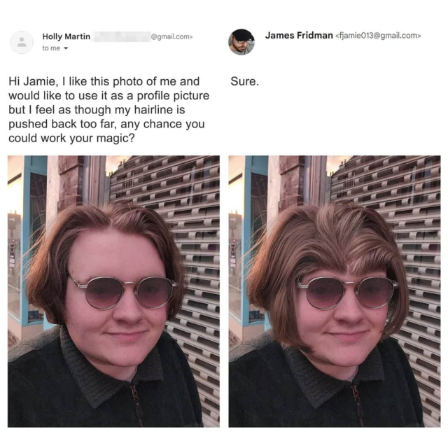 Я хотел бы поставить это фото на аватарку, но мои волосы зачёсаны назад слишком сильно. Есть ли вероятность, что тут может сработать твоя магия?