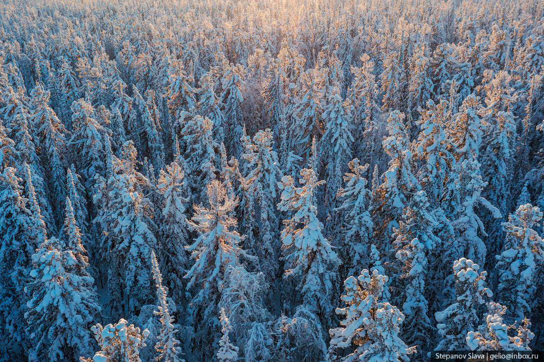 Тайга зимой с высоты