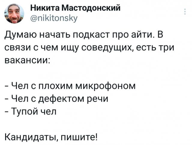 Забавные твиты для хорошего настроения 04/04/2025 23:30 Наступила пятница, а это значит, что мы снова получаем порцию забавных твитов, которые поднимут вам настроение. Давайте посмотрим, что интересного приготовили пользователи социальных сетей! Главная / Картинки -1 Admin 0 245