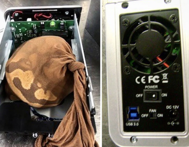 Просто змея в мешочке, которую засунули внутрь ящика с электроникой