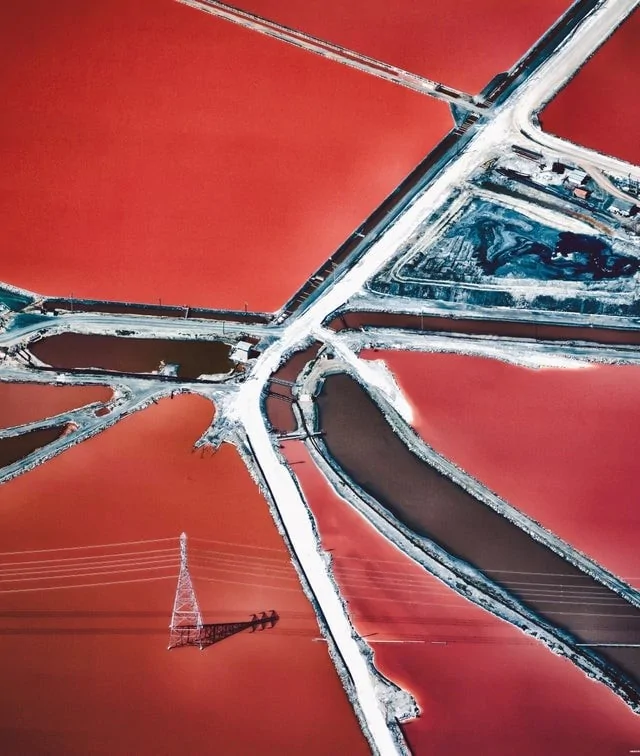 Солёные пруды в заливе Сан-Франциско, красные из-за водорослей, которые растут в солёной воде