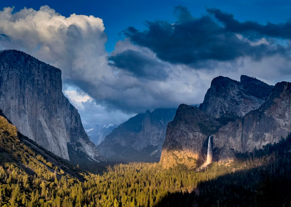 Долина Йосемити, включая Хаф-Доум, Клаудс-Рест, водопад Брайдлвейл и Эль-Капитан, вид с смотровой площадки Tunnel View после короткого ливня, прошедшего 27 марта 2025 года в национальном парке Йосемити, Калифорния. (Фото Джордж Роуз):