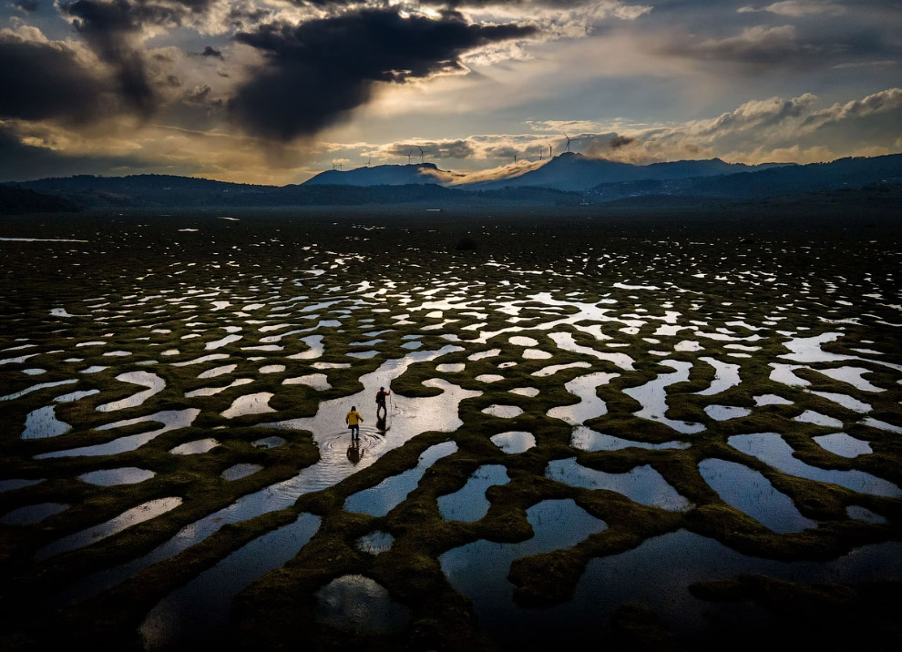 Вид с воздуха на водно-болотные угодья и излучины реки Сакарья, расположенной на плато Карагёль в районе Тараклы города Сакарья, Турция, 6 апреля 2025 года. Заполненные водой излучины создают прекрасный пейзаж с приходом весны. (Фото Сейит Коньяли):
