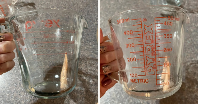 Мой мерный стакан, которому всего 4 года, и мерный стакан моей бабушки, которому 30+ лет