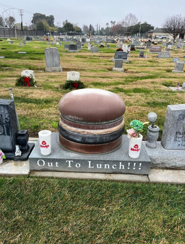 "Отошёл на обед". Надгробие в Калифорнии