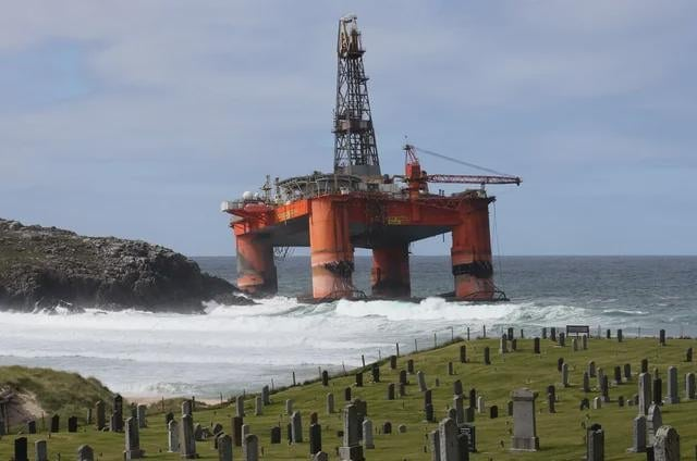 Морская нефтяная вышка, которую прибило к побережью острова Льюис из-за экстремальных погодных условий в 2016 году