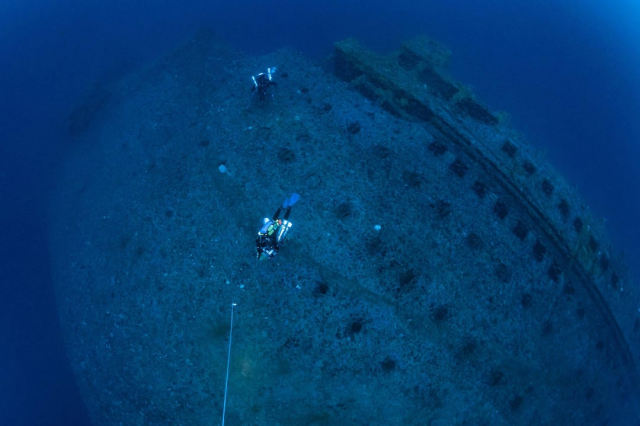 Два водолаза рядом с «Британником», собратом «Титаника», который затонул на 4 года позже, в 1916 году