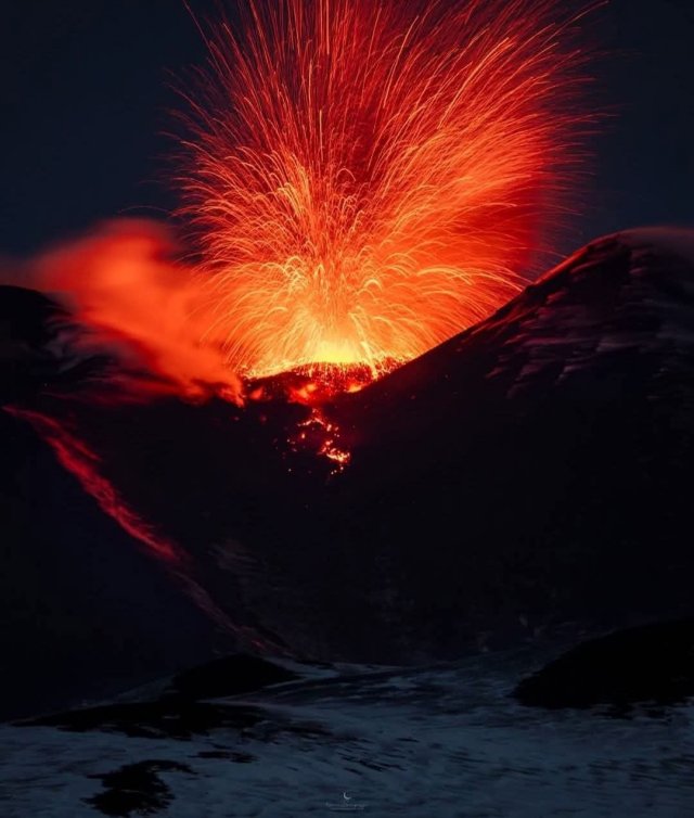 Это крупнейший вулкан в Европе, который то затухает, то просыпается вновь. Сообщается, что Этна выбросил столб пепла на высоту 3 километра - его видели далеко за пределами Сицилии. На острове объявлен «оранжевый» уровень опасности. Сегодняшнее извержение Этны стало четвертым с начала апреля.