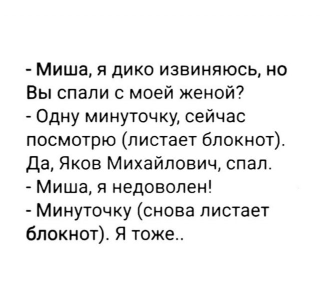 😂 Мемчики на любой вкус 30/04/2025 20:00 Зашли, посмотрели, поржали. Вот и всё описание. А как вы проводите свои майские? Пишите в комментах! Главная / Картинки +2 Admin 0 165