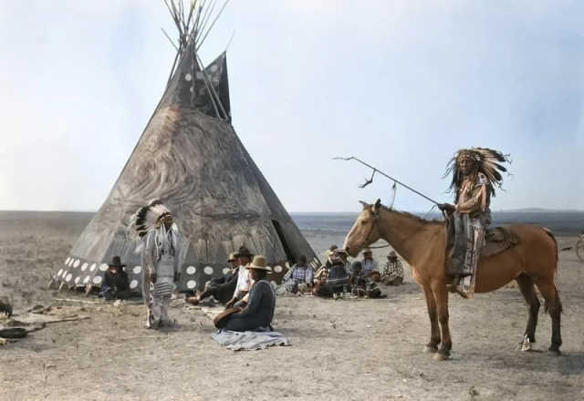 Индейское поселение на территории Великих равнин, 1890 год.