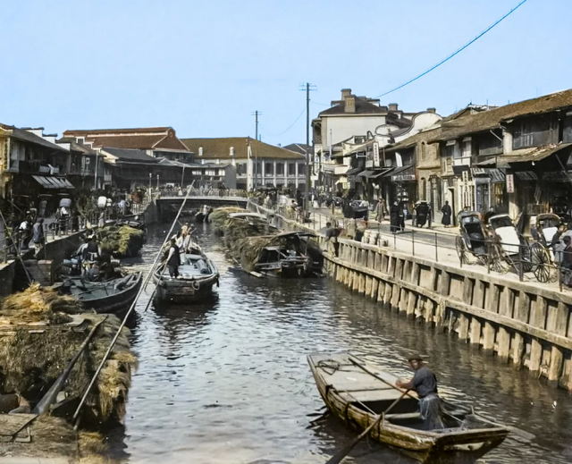 Канал в старом Шанхае, Китай,1870 год.