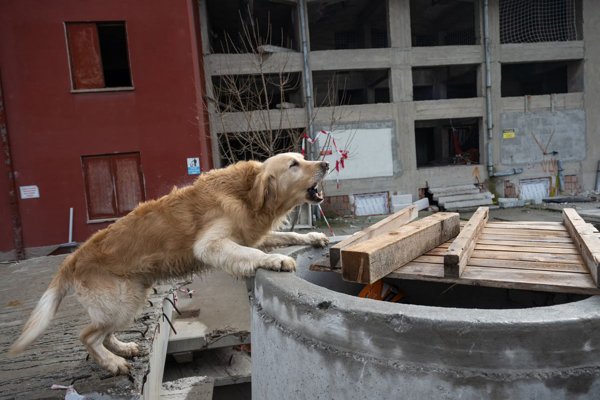 Собаки поисково-спасательной службы принимают участие в тренировке в Анкаре, Турция, 9 января 2024 года. (Фото Омер Таха Четин):