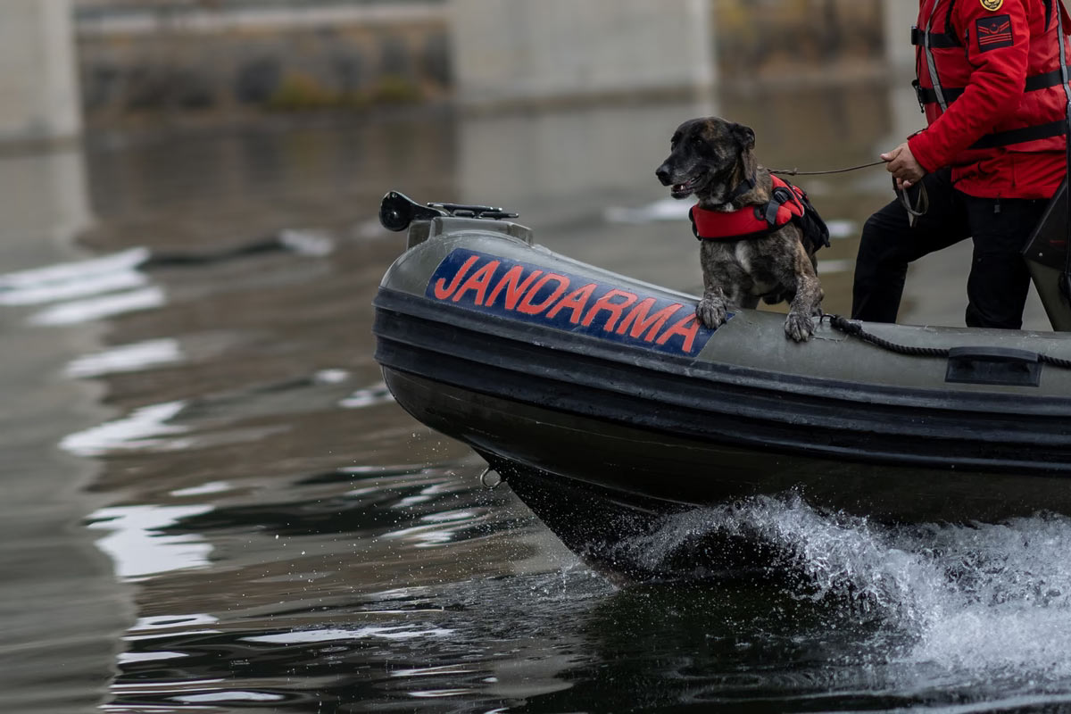 Поисково-спасательная собака принимает участие в тренировке по спасению на воде в Анкаре, Турция, 19 ноября 2024 года. (Фото Мехмет Али Озджан / Анадолу):
