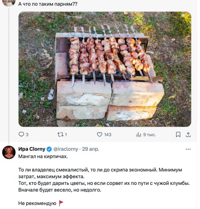 Какой у тебя мангал? 05/05/2025 23:30 В сети «X» разгорелся интересный тред! Одна девушка обсуждает, как мангал может рассказать о характере мужчины. А ты согласен с этим? Главная / Картинки 0 Admin 0 298