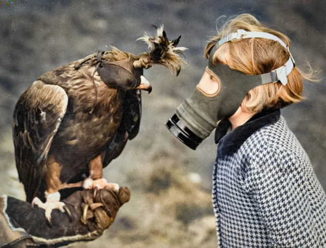 Маленькая девочка завтракает со львом, год съемки неизвестен.