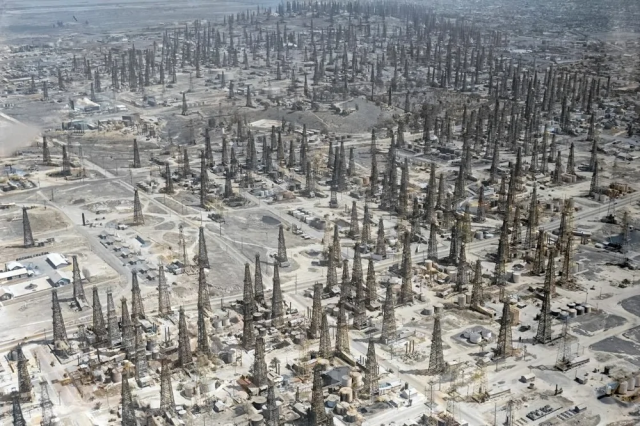 Лес нефтяных вышек на нефтяном месторождении в Signal Hill, Лонг-Бич, Калифорния, 1937 год.