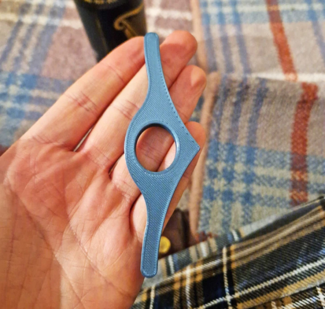 Ответ: «Это держатель для чтения книг. Он надевается на большой палец руки, острый конец прижимается к корешку, и им таким образом удобно держать книгу одной рукой».