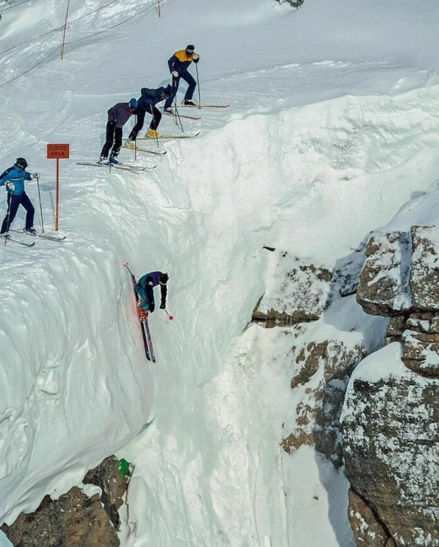 Пример спуска по практически вертикальному кулуару от горнолыжника Даг Кумбс, автор фото Джексон Хоул, Вайоминг, 1989-й
