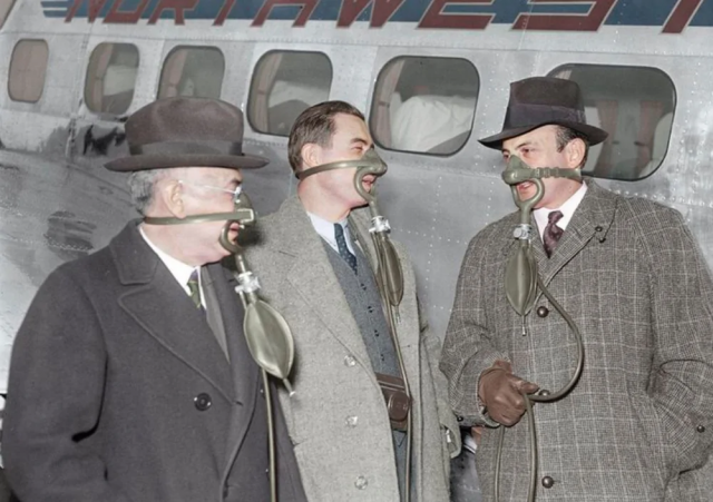 Так выглядели коммерческие авиаперевозки, а точнее люди на них, до появления герметичных салонов самолетов, Бостон, 1939-й