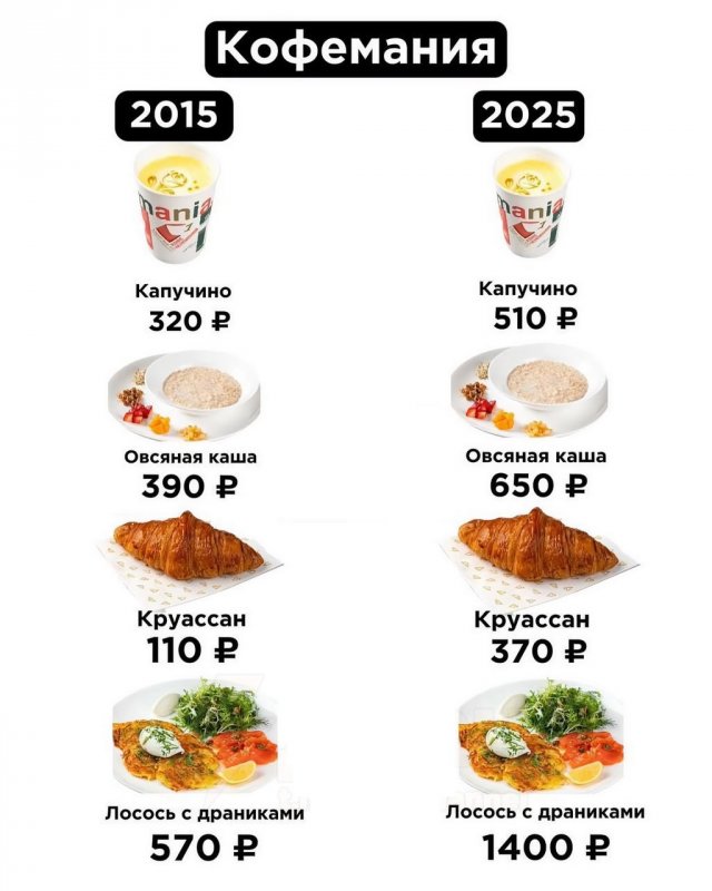 Жить прошлым — не вариант, но вот вспоминать, как все было раньше, всегда интересно. В Сети опубликовали данные о том, как за последние 10 лет подскочили цены в популярных кафе и ресторанах. В среднем, большинство блюд подорожало в два раза и больше!