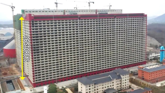 Итак, перед вами два огромных «свиноскрёба» - это крупнейшая свиноферма в Китае, где выращивают свыше 1,2 млн голов. Внутри находятся десятки тысяч загонов, автоматическая кормёжка, климат-контроль и круглосуточный мониторинг. Кстати, навоз свиней перерабатывается в биогаз, которым обогревают и питают сам комплекс.