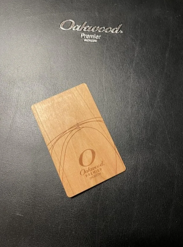 К вопросу экологии: карточки-ключи из дерева, а не пластика, отель Oakwood
