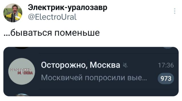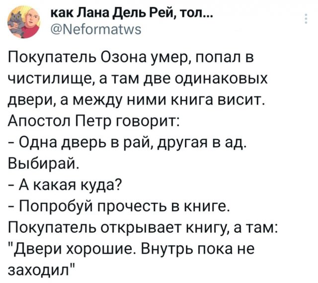 Забавные твиты для хорошего настроения 21/05/2025 23:00 Новая подборка смешных твитов прямо здесь! Если хотите перерыв и хорошее настроение — читайте, смейтесь и получайте удовольствие. Приятного вам просмотра! Главная / Картинки +1 Admin 0 111