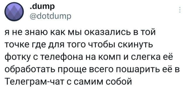 😂 Твиттер снова в ударе: свежая порция кринжа, смеха и мемов подоспела 27/05/2025 15:00 Лучшее из смешного — всё в одной подборке. Без лишних слов, просто заходите, листайте и кайфуйте. Тут и про жизнь, и про работу, и про котиков. 🐱💬 Главная / Картинки +3 Admin 0 173