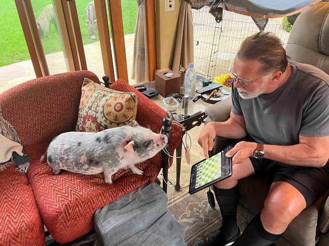Арни — не только Терминатор, но и большой фанат животных. У него дома живут свинка, лошадь, осёл, собаки и... кто-то ещё. Его сын раскрыл секрет — зачем папа решил жить как в мини-ферме.