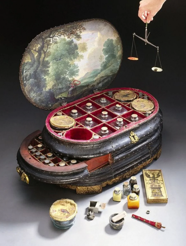 Весьма компактная средневековая аптечка: 126 флаконов с лекарствами, 1560-е