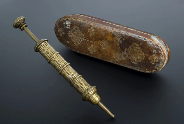 Латунный шприц с футляром – само собой, многоразовый, 1601-1630-е