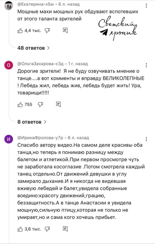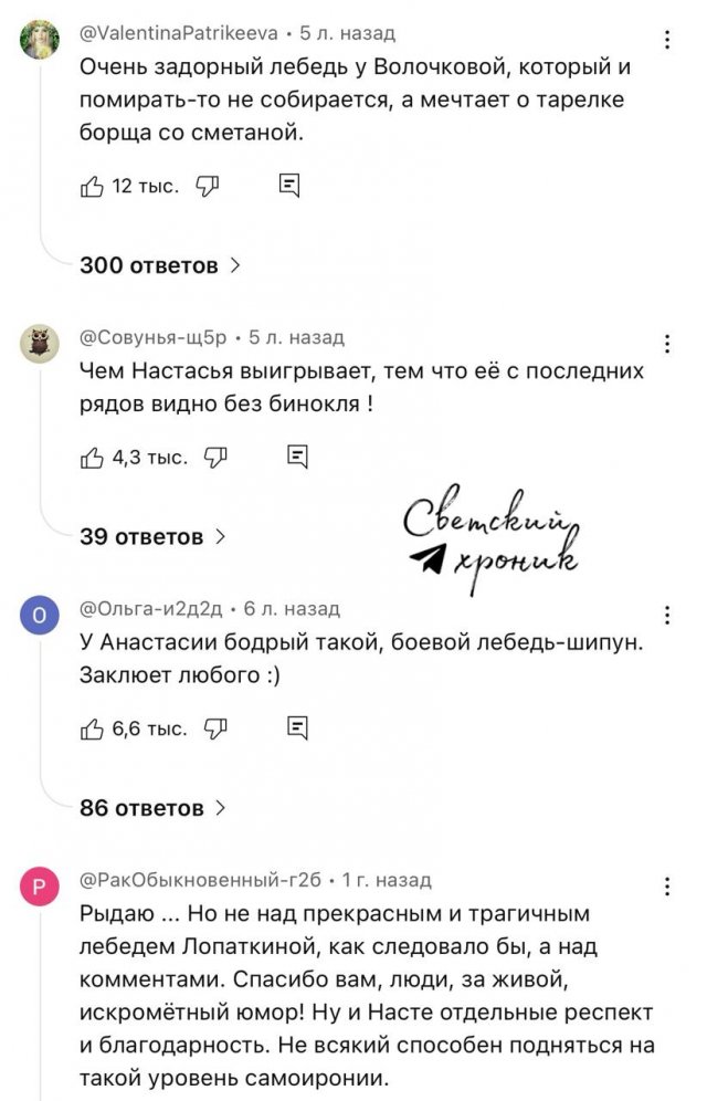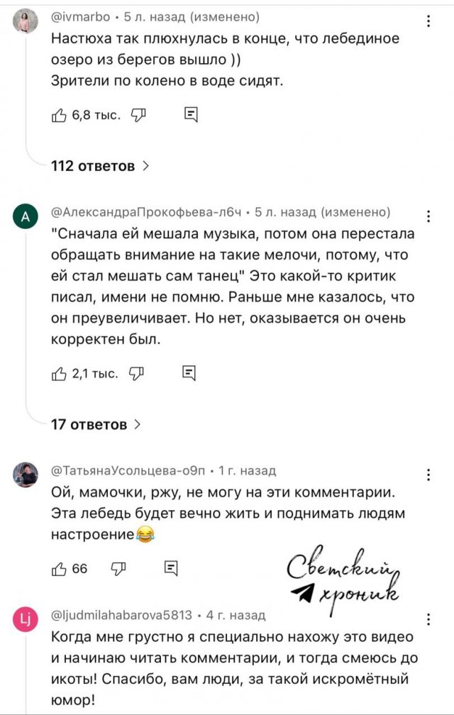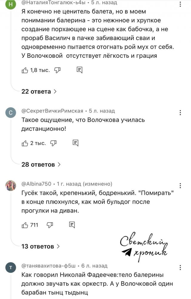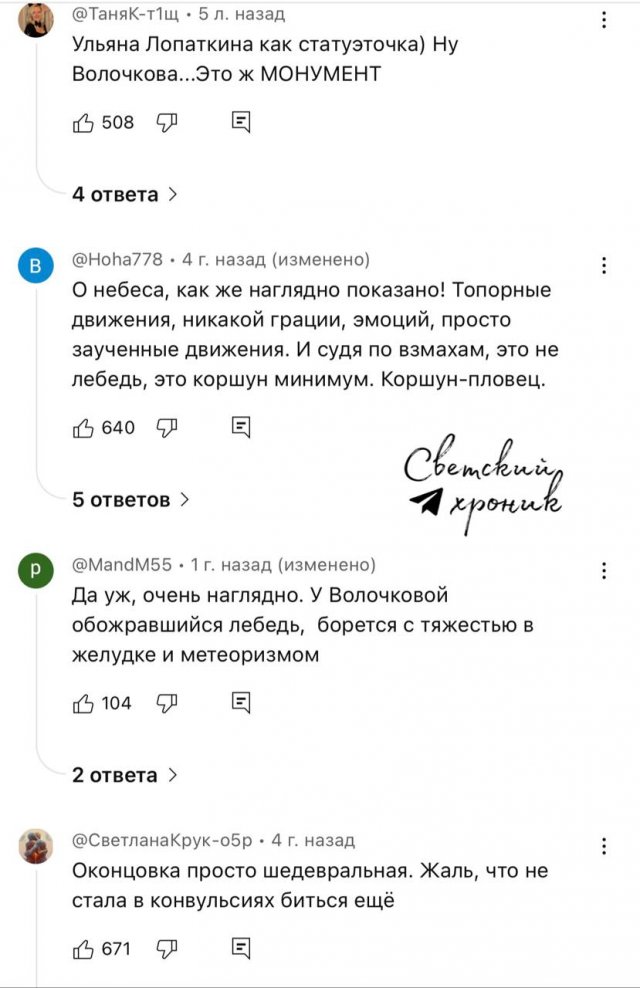 Сегодня поговорим о балете, ну или хотя бы о балеринках! 🤸♀️ Волочкова – не просто звезда, она и купель успела покорить, но на сцене её не видели давно. Так вот, недавно Сеть сравнила её «Умирающего лебедя» с выступлением Ульяны Лопаткиной. Кстати, видео смотрите на 1,5x скорости — эффект неожиданно крутой! 😜