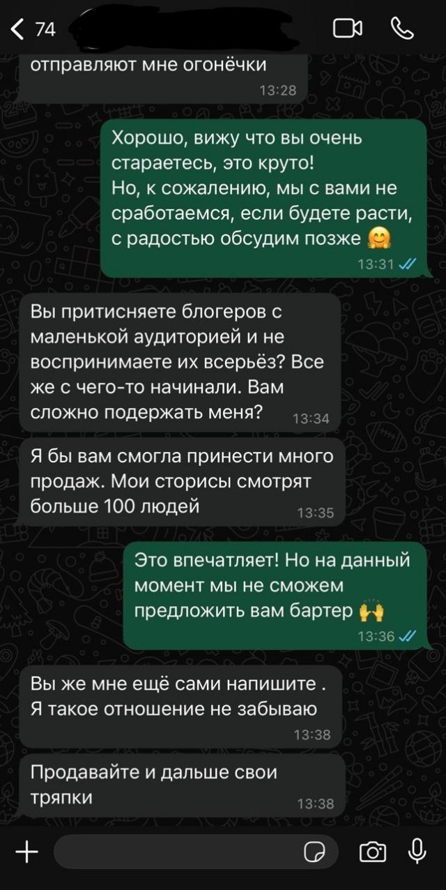 Каждый второй сейчас говорит, что блогер с миллионом подписчиков получил бесплатный айфон, путёвку или ещё что-то крутое. Вот и девушка с приличной аудиторией решила попросить себе подарок от бренда. Но что-то пошло не так…