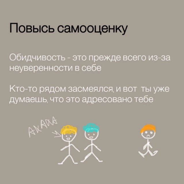 Советы психолога: как перестать обижаться 10/06/2025 21:00 Обида — это не просто неприятное чувство, а реальная проблема. И порой она вредит не тому, на кого обиделись, а именно вам. Поэтому важно научиться отпускать такие эмоции. Главная / Картинки 0 Admin 1 44