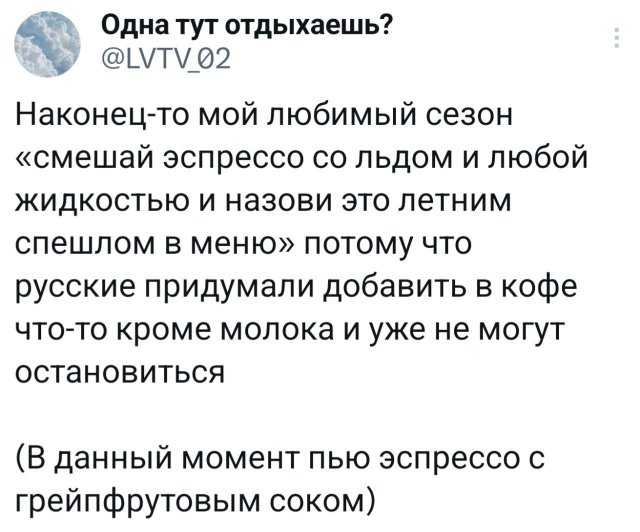 😄 Свежайшая подборка твитов, от которых поднимется настроение 13/06/2025 18:00 Интернет снова выдал порцию гениальных твитов. Тут и мемы, и мудрость, и лёгкий абсурд — всё как мы любим. Залетай, читай, улыбайся, лайкай. Вечер сделан. Главная / Картинки +2 Admin 0 89