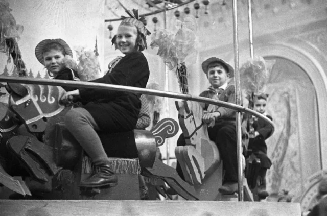 Дети на карусели. С. Васин, 1949 год, Москва.