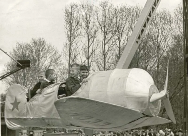 Новый аттракцион «Самолет» в день открытия парка, Г. Ефимовский, 24 мая 1964 года, Череповец.