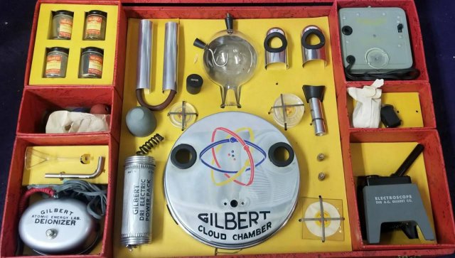 Кто знал, что 1950-е подарили детям... радиоактивный набор для опытов? В него клали даже уран-238, счётчик Гейгера и другие приблуды. Но игрушка не стала хитом — люди всерьёз опасались радиации. Хорошо, хоть современные игрушки безопаснее (мы надеемся).