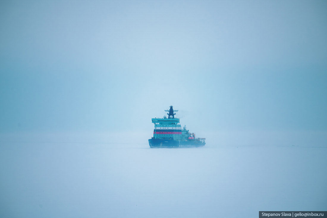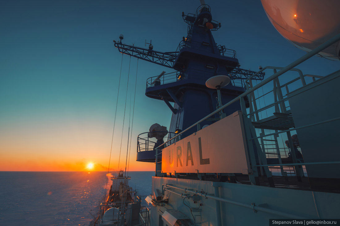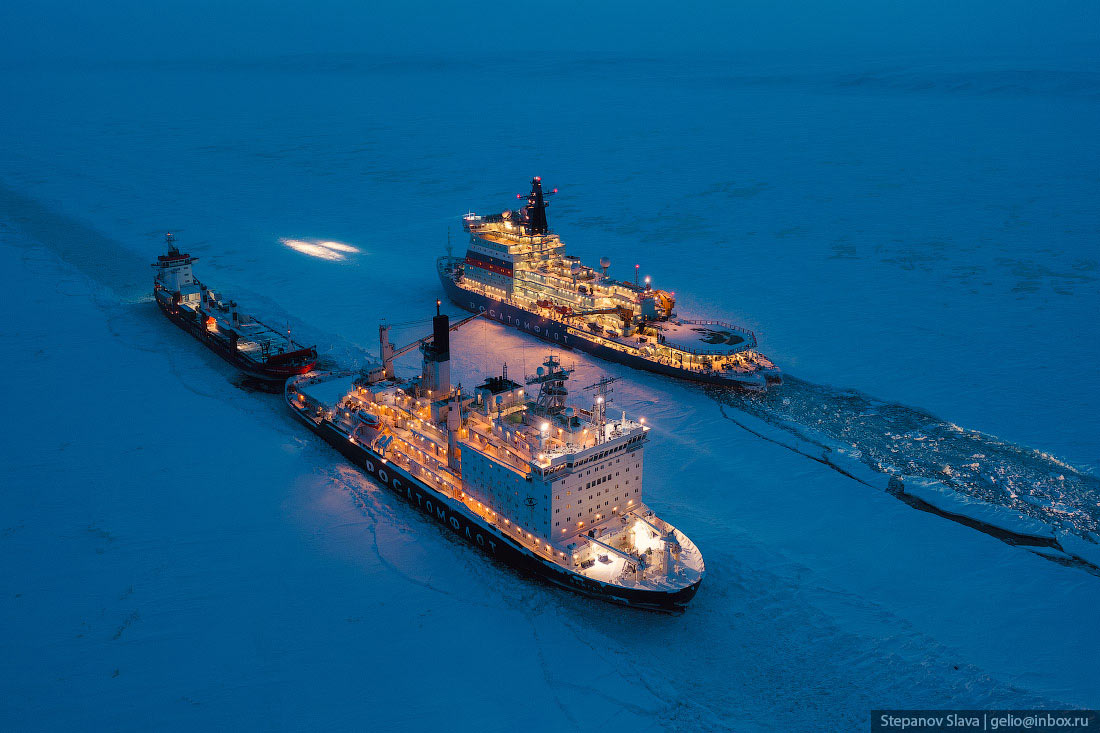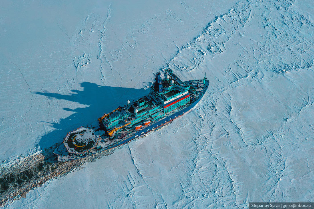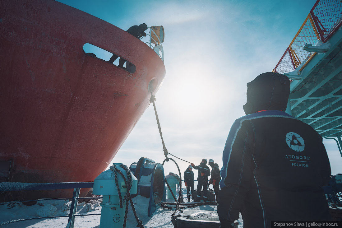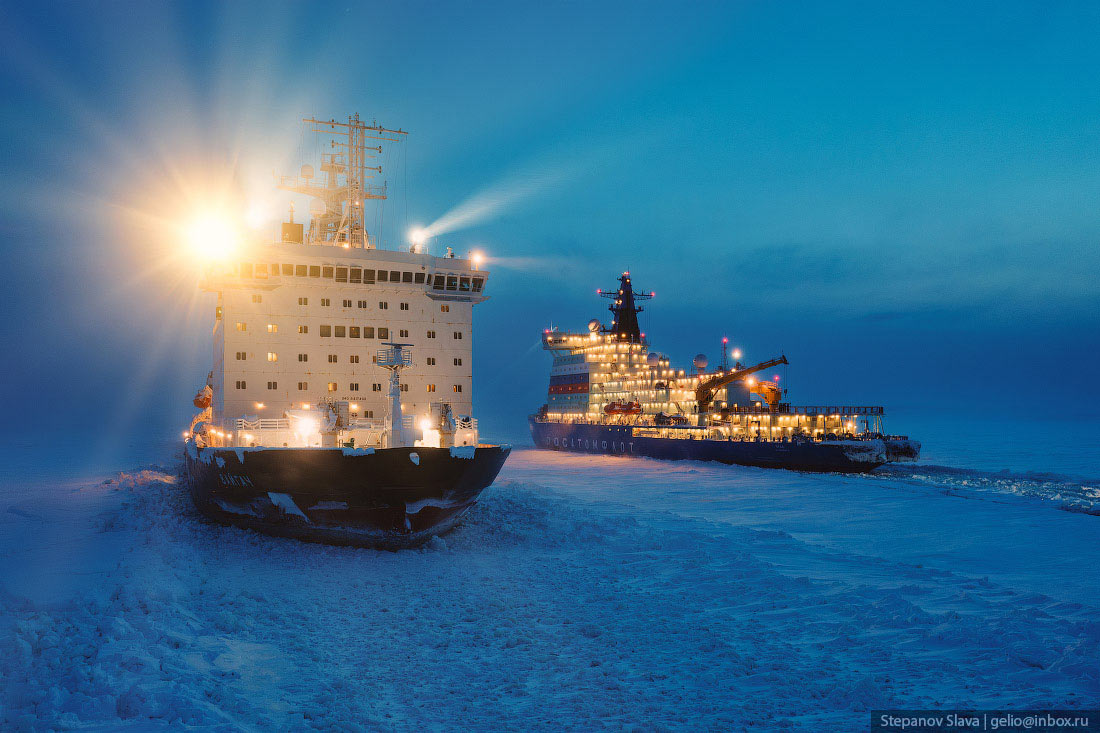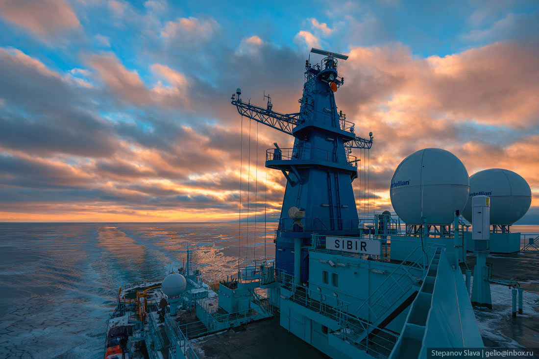 Фотографии и текст Славы Степанова 1. Россия — единственная страна в мире, которая обладает атомным ледокольным флотом. Атомные ледоколы обеспечивают безопасное судоходство в Арктике, это ключевое звено в работе на Северном морском пути. Арктикой называют всю область планеты за Северным полярным кругом. Площадь российского сектора около 9 млн квадратных километров. Это очень перспективная территория как по полезным ископаемым, так и в плане транспортного пути. Именно здесь находятся одни из крупнейших газовых и газоконденсатных месторождений, а Северный морской путь позволяет перевозить грузы между Европой и странами Азиатско-Тихоокеанского региона по кратчайшему судоходному маршруту. И в большинстве арктических проектов участвует атомный ледокольный флот.