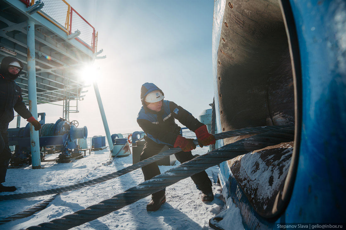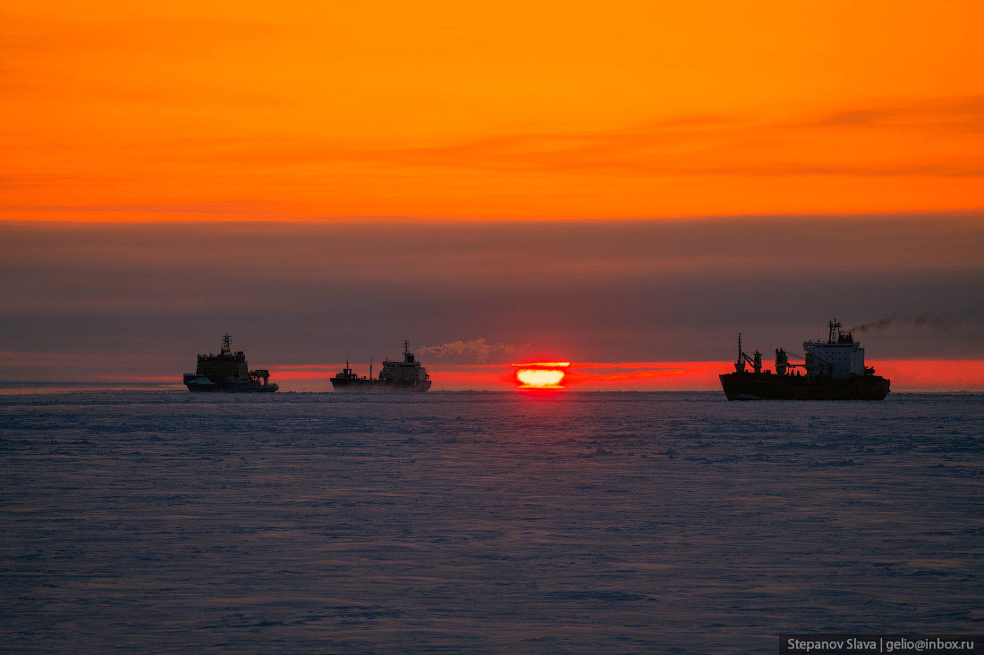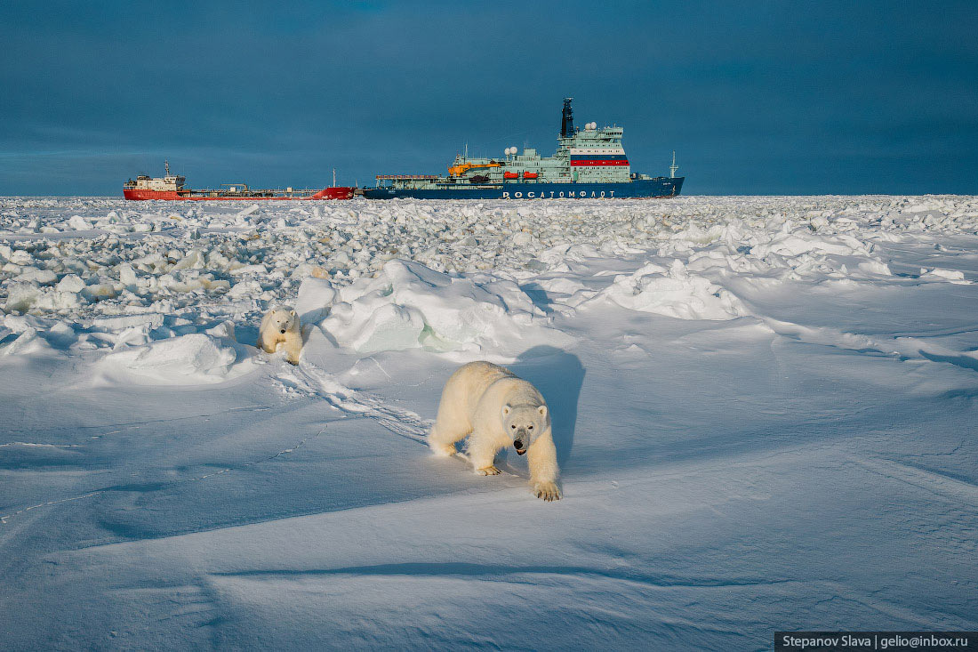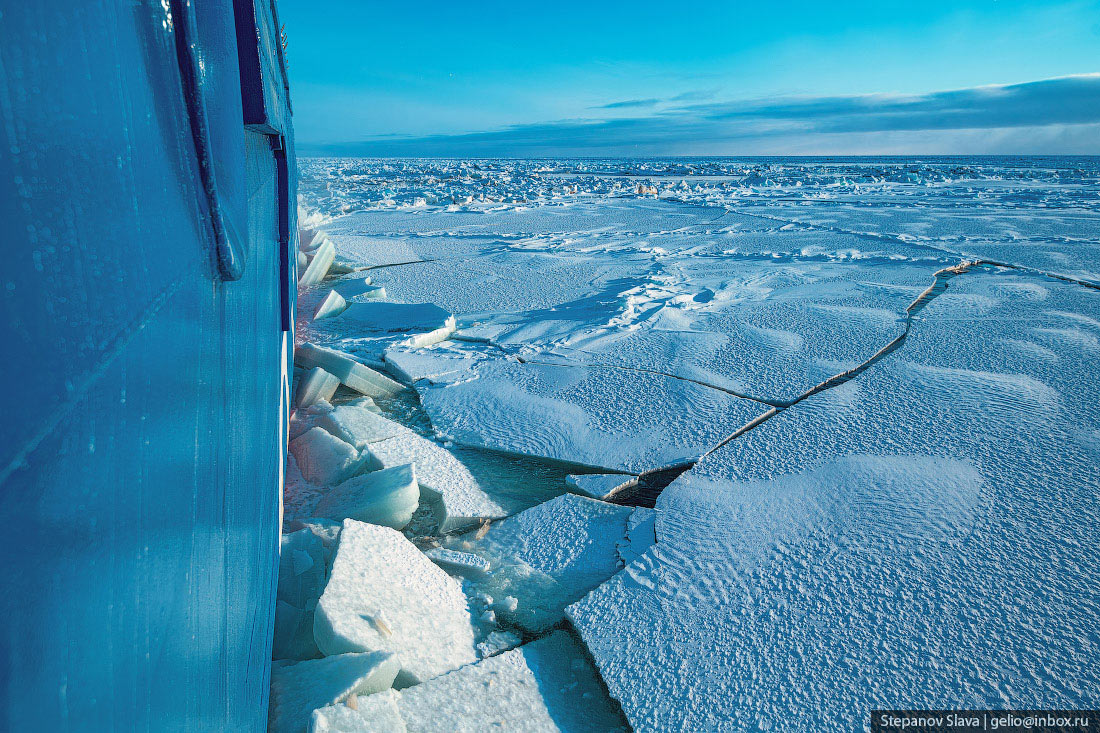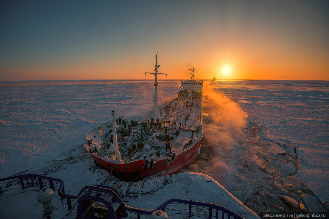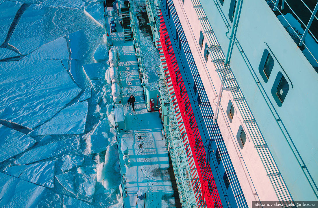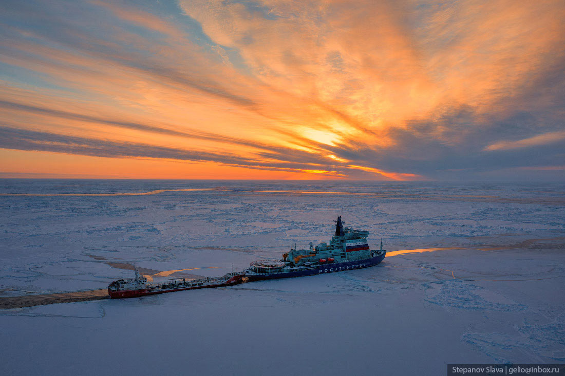 Фотографии и текст Славы Степанова 1. Россия — единственная страна в мире, которая обладает атомным ледокольным флотом. Атомные ледоколы обеспечивают безопасное судоходство в Арктике, это ключевое звено в работе на Северном морском пути. Арктикой называют всю область планеты за Северным полярным кругом. Площадь российского сектора около 9 млн квадратных километров. Это очень перспективная территория как по полезным ископаемым, так и в плане транспортного пути. Именно здесь находятся одни из крупнейших газовых и газоконденсатных месторождений, а Северный морской путь позволяет перевозить грузы между Европой и странами Азиатско-Тихоокеанского региона по кратчайшему судоходному маршруту. И в большинстве арктических проектов участвует атомный ледокольный флот.