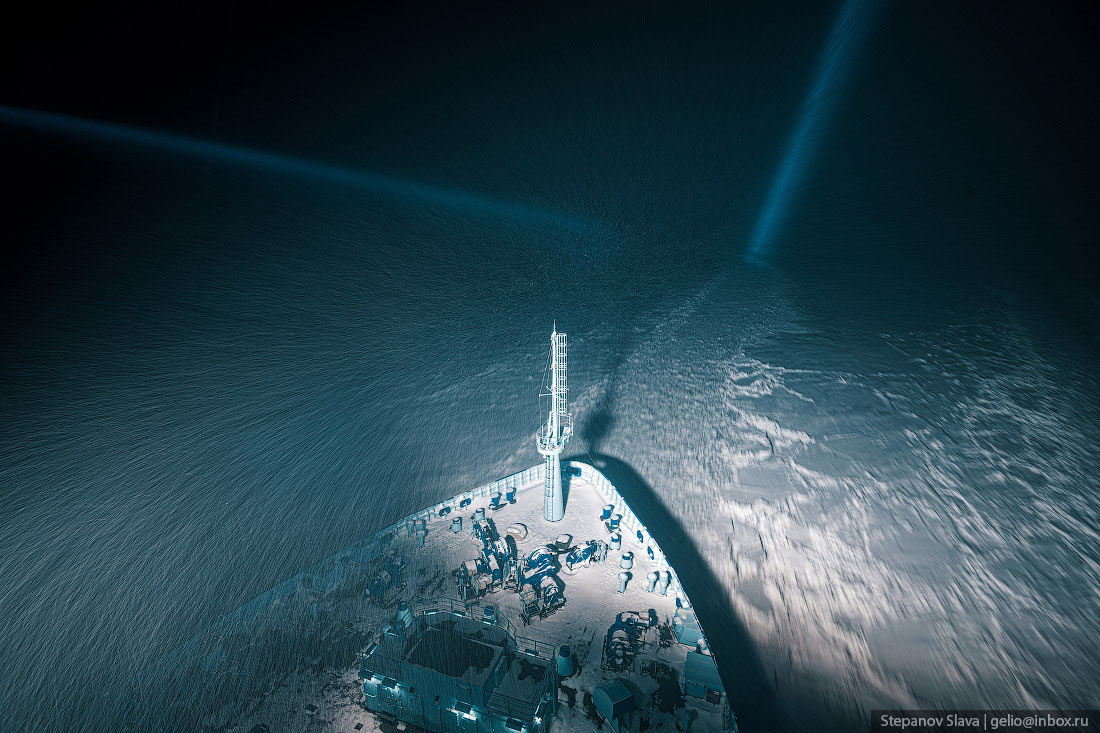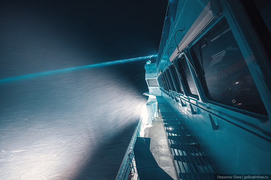 18. На ледоколе есть мощное внешнее освещение — прожекторы, светодиодные системы. Это позволяет работать в условиях недостаточной видимости.