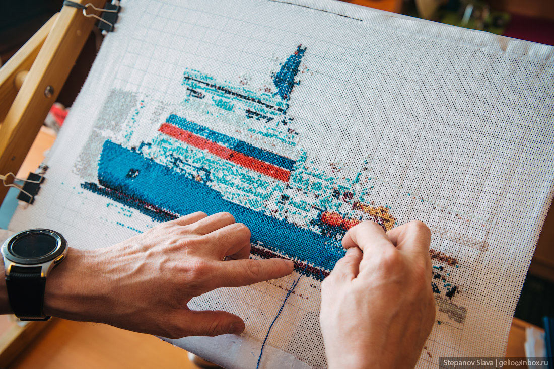 43. Между вахтами моряки проводят время за хобби и развлечениями, ходят в спортзал, играют в компьютерные игры. Некоторые, например, вышивают крестиком.
