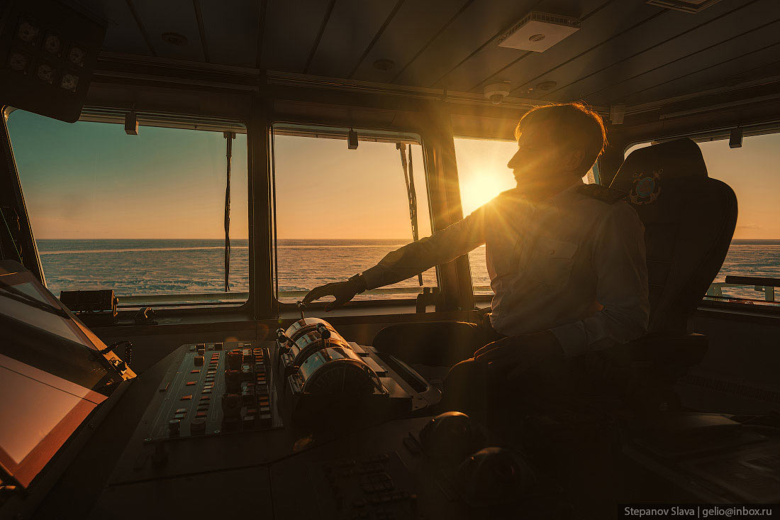 13. Рулевой. Благодаря современному оборудованию может сложиться впечатление, что управление судном сравнимо с вождением автомобиля. Однако это ощущение, конечно, обманчиво.