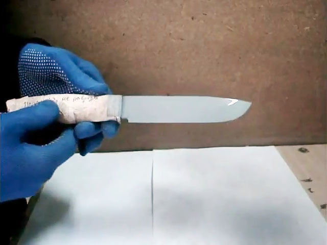 Далее клинок закрашивается тонким слоем грунтовки и откладывается для просыхания на 15-20 мин. Затем на него наносится второй слой и выполняется окончательная сушка не менее 2-3 часов.